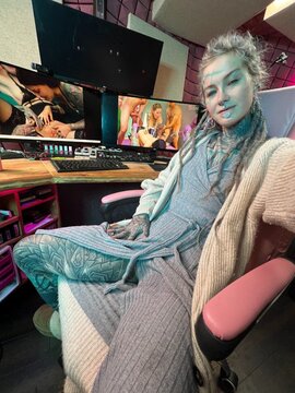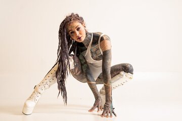 A heavily tattooed alternative dreadhead.