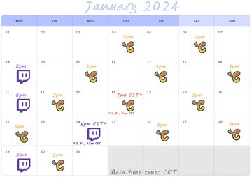 #Schedule for January! ?⚫️Please note, that there are 2 streams at different times⚫️